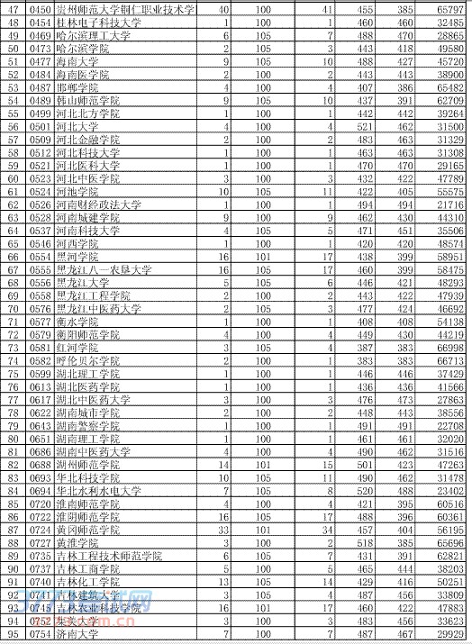 贵州省2014年普通高校招生第二批本科理工类征集志愿投档情况(7月25日)