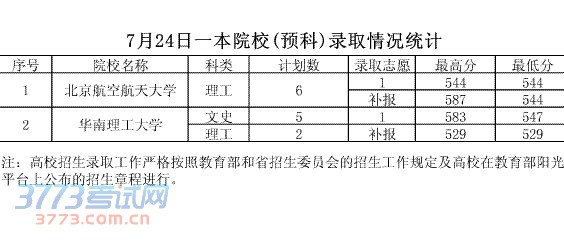 7月24日一本院校(预科)录取情况统计