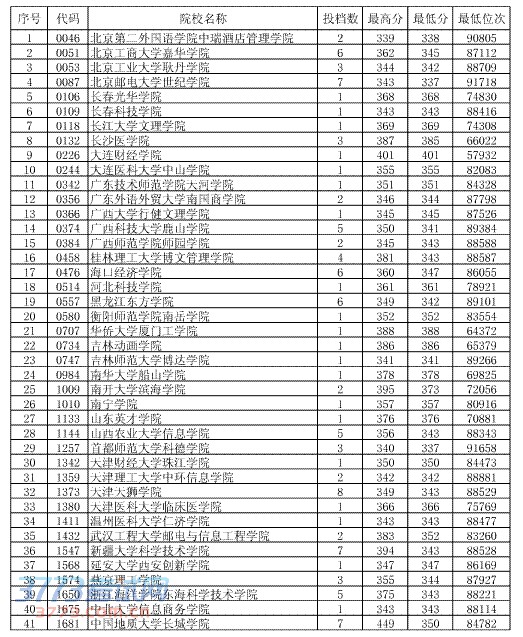 [图文]2014贵州高考三本理科院校第2次补报志愿投档分数线
