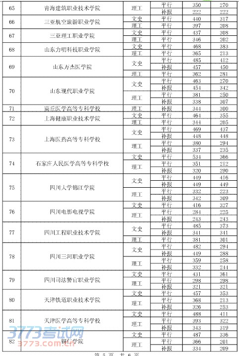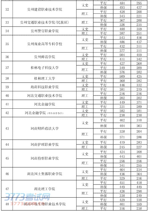 [组图]2014年8月15日贵州高考专科院校录取分数线情况
