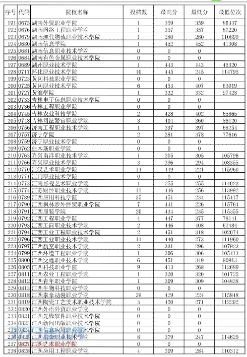 贵州省2014年普通高校招生高职(专科)文史类征集志愿投档情况(8月14日)