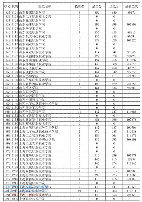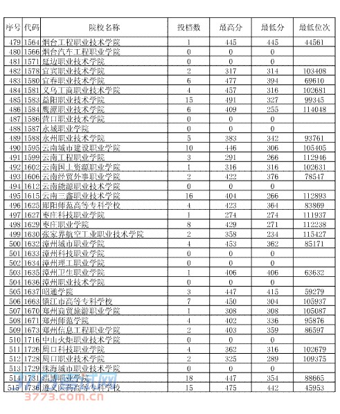 [组图]2014年8月14日贵州高考专科文科征集志愿投档分数线