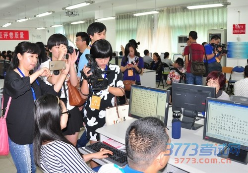 媒体记者参观高考评卷