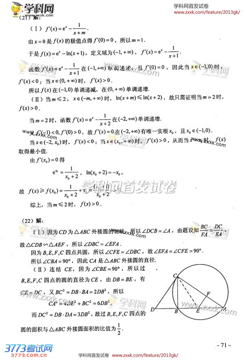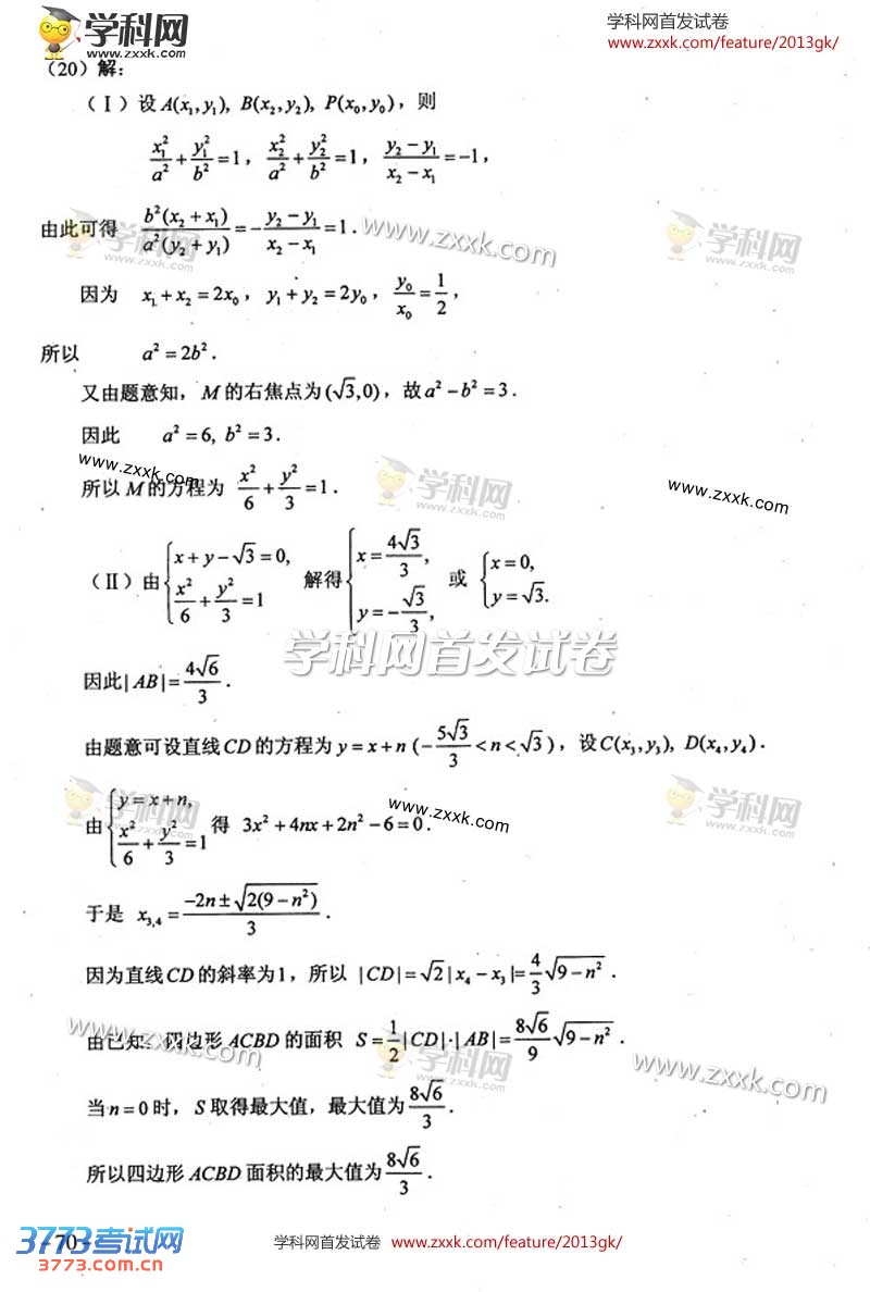[组图]2013高考新课标数学理科答案(全国2卷)