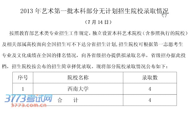 2013年艺术第一批本科部分无计划招生院校录取情况(7月14日)2013年艺术第一批本科部分无计划招生院校录取情况(7月14日)