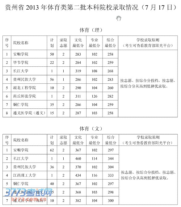 贵州省2013年体育类第二批本科院校录取情况(7月17日)贵州省2013年体育类第二批本科院校录取情况(7月17日)
