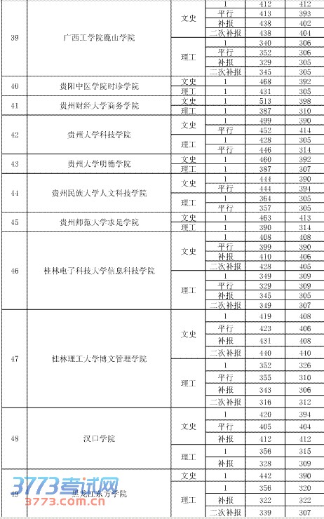 [组图]2013年8月8日贵州高考三本院校录取分数线