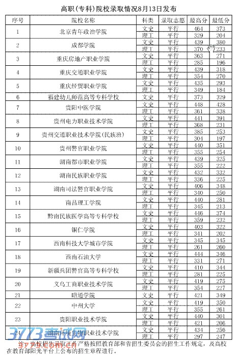[图文]2013年8月13日贵州高职(专科)院校录取分数线