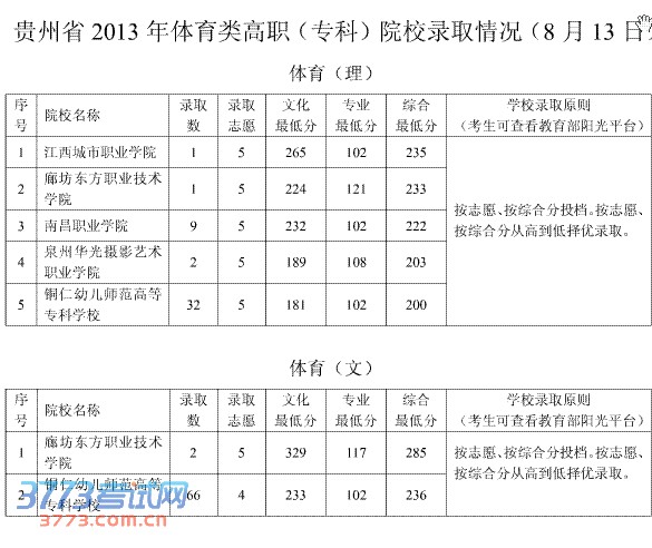 贵州省2013年体育类高职(专科)院校录取情况(8月13日)贵州省2013年体育类高职(专科)院校录取情况(8月13日)