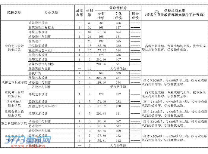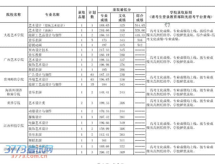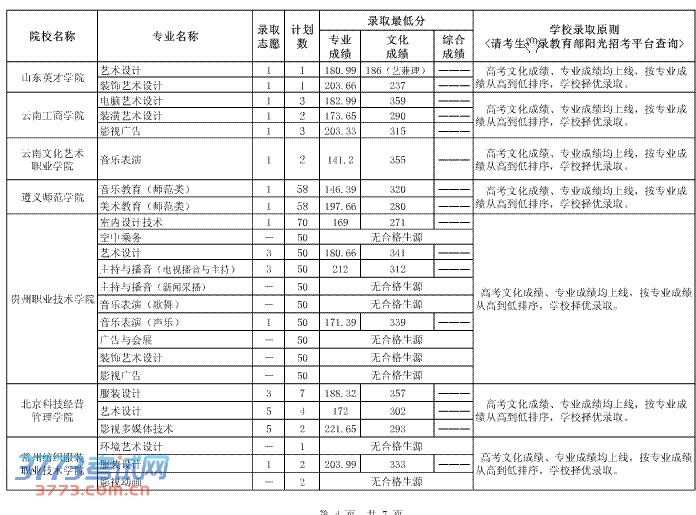 [组图]2013年8月15日贵州艺术类专科院校录取分数线