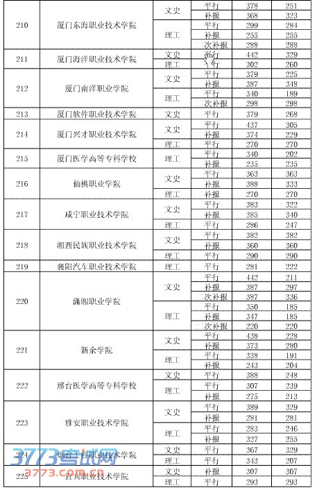 [组图]2013年8月20日贵州高考专科院校录取分数线