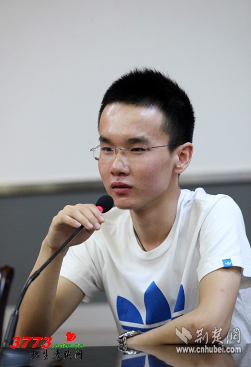 湖北省文科状元吴戴维在接受采访(楚天快报记者卢亚明摄)