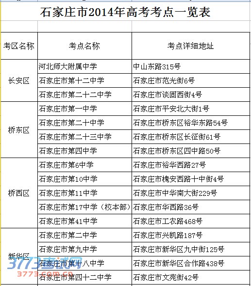6月7日、8日,2014年高考将在石家庄市63个考点、308个考场进行。考点公布如下: