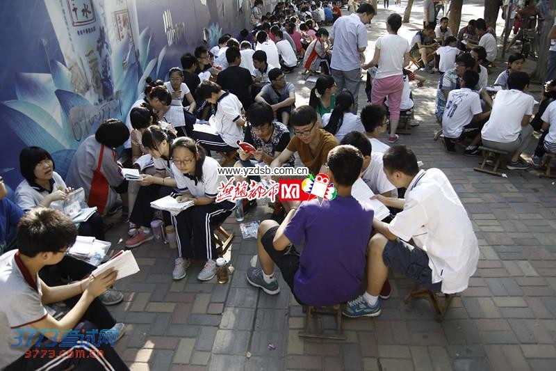 十五中考点外,早上进场前考生聚在一起抓紧时间复习。燕赵都市报记者孟宇光见习记者霍艳恩/摄