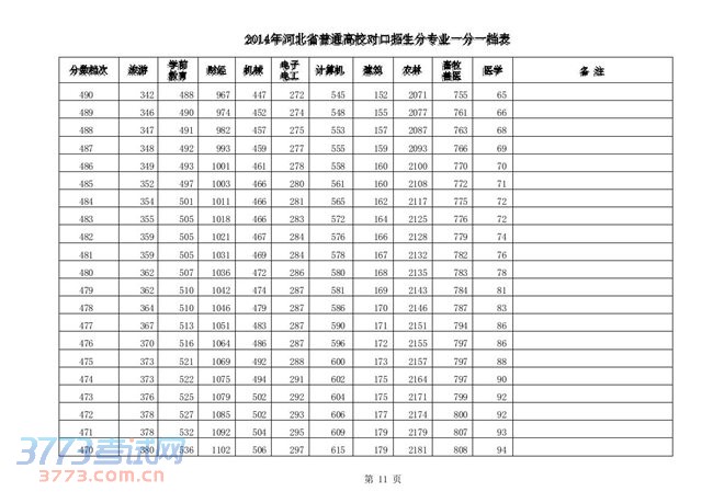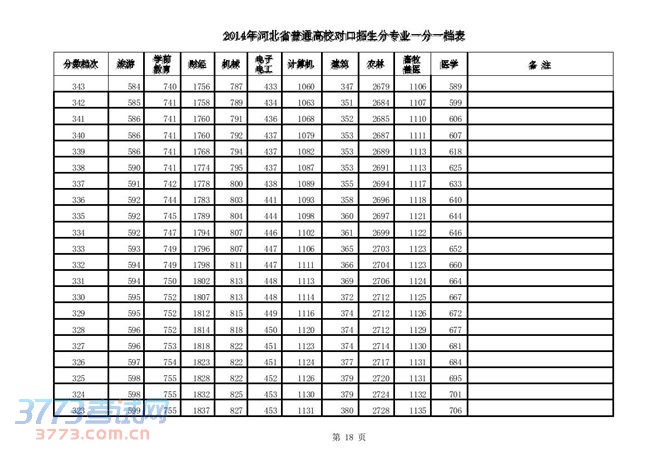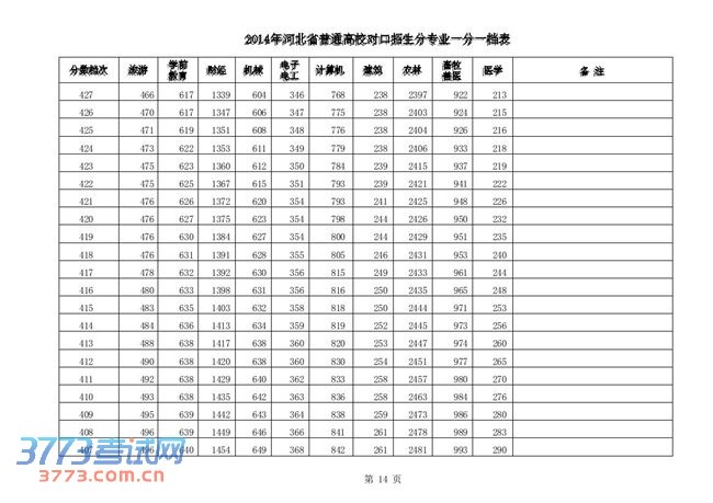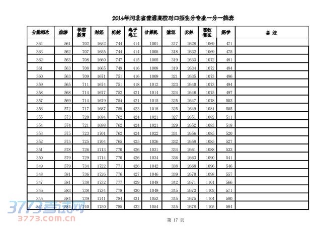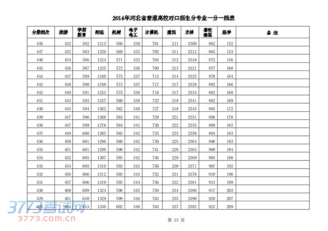 [组图]2014河北高考对口招生分专业一分一档表