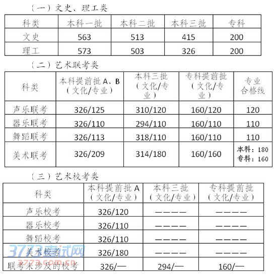 按教育部规定,31所独立设置的艺术院校和参照执行的13所高校(或专业)艺术类本科专业,文化录取控制线由学校自行确定。其艺术类专科专业中,河北省联考涉及的,文化、专业录取控制线按河北省相应联考类控制线执行;河北省联考未涉及的,文化控制线为160分。