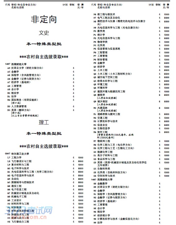 [组图]2014哈尔滨工业大学西南财经大学农村自主招生计划