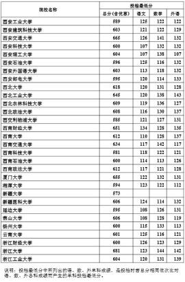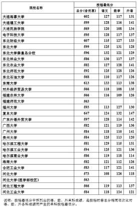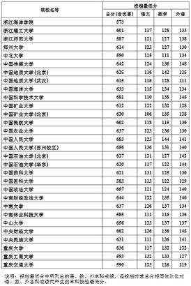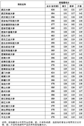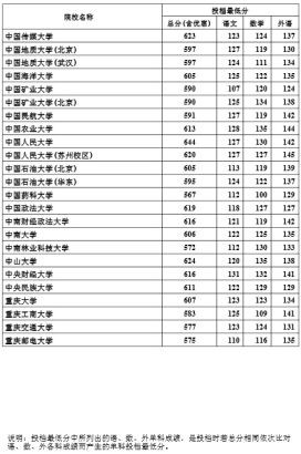 说明:投档最低分中所列出的语、数、外单科成绩,是投档时若总分相同依次比对语、数、外各科成绩而产生的单科投档最低分。