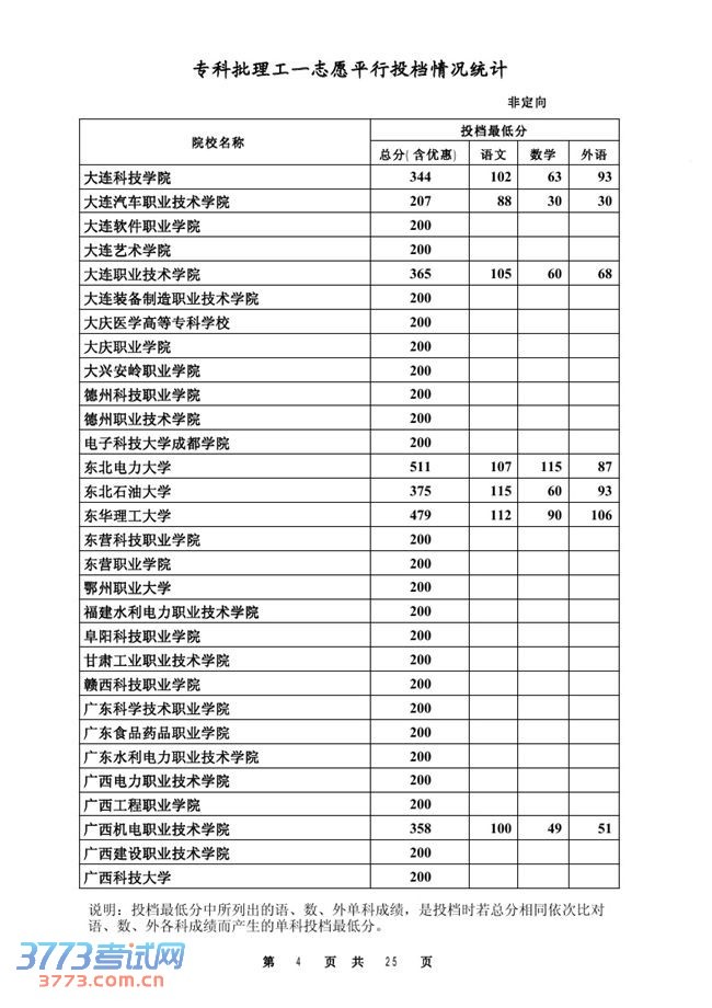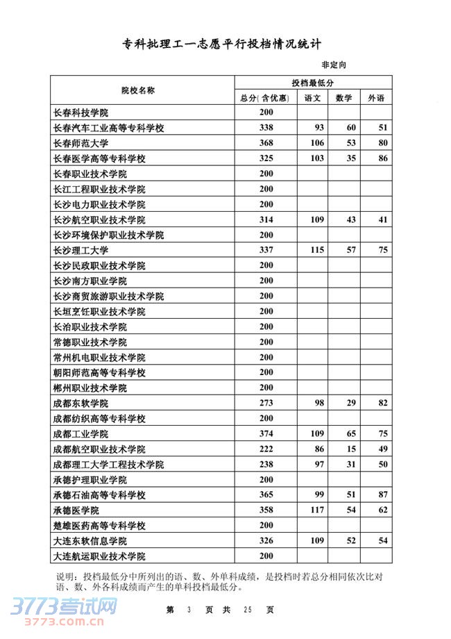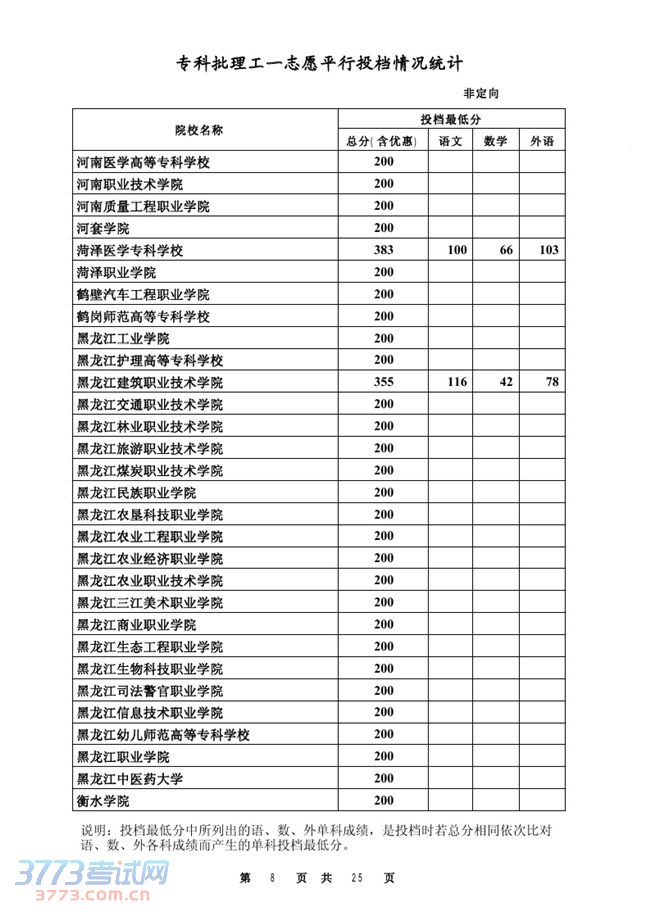 1.投档最低分中所列出的语、数、外单科成绩,是投档时若总分相同依次比对语、数、外各科成绩而产生的单科投档最低分。