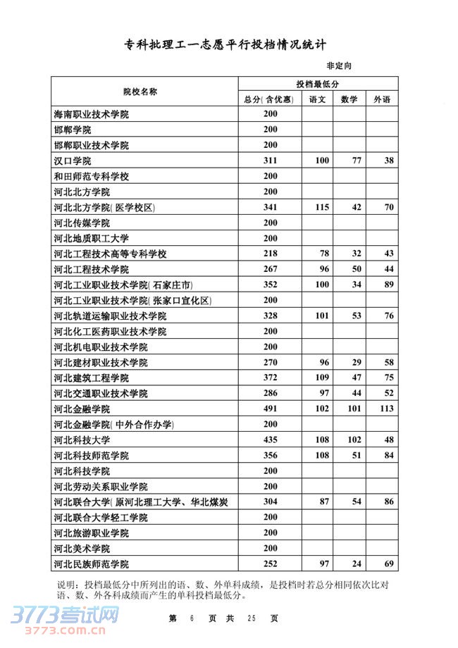 [组图]2014河北高考专科批理科一志愿投档分数线