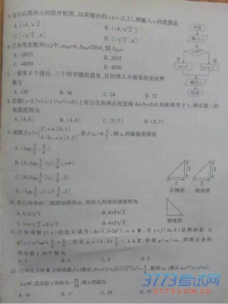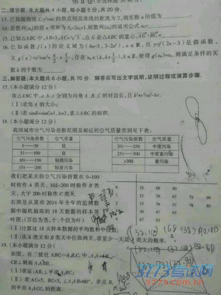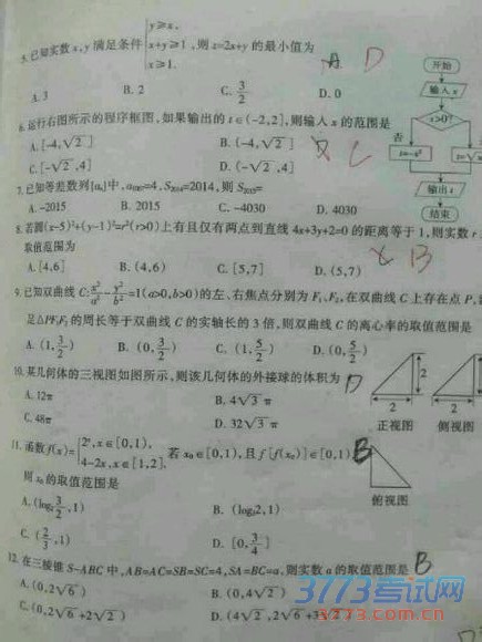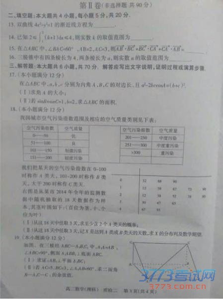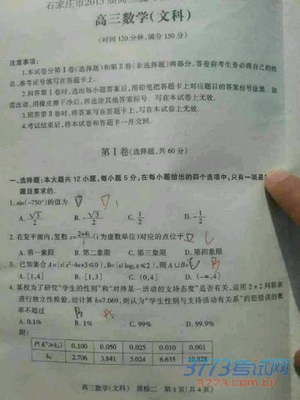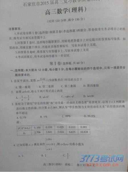 石家庄市2015届高三教学质量检测(二) 数学参考答案