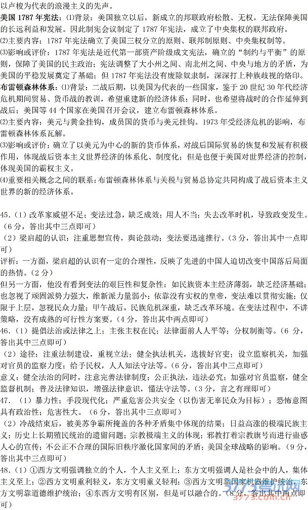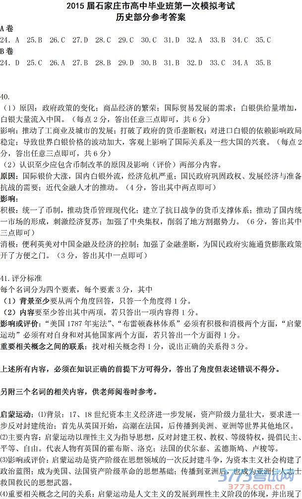 [组图]2015石家庄一模文综历史答案发布