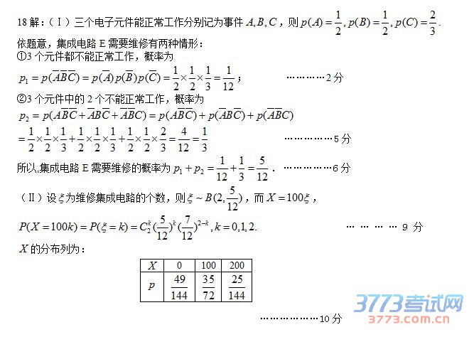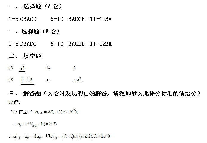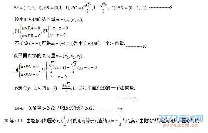 2015年石家庄一模数学答案 2015石家庄一模数学试题答案
