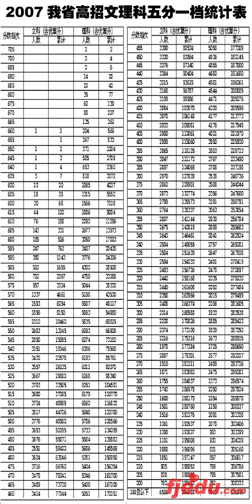 对考生来说,填报志愿时能清楚知道自己所处的位置意义重大,因此,本报特意制作了2007年河北省普通高校招生文理科五分一档统计表,以帮助广大考生明确自己在全省考生中所处的位置。