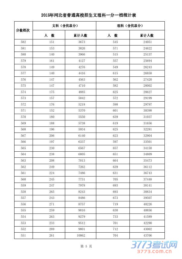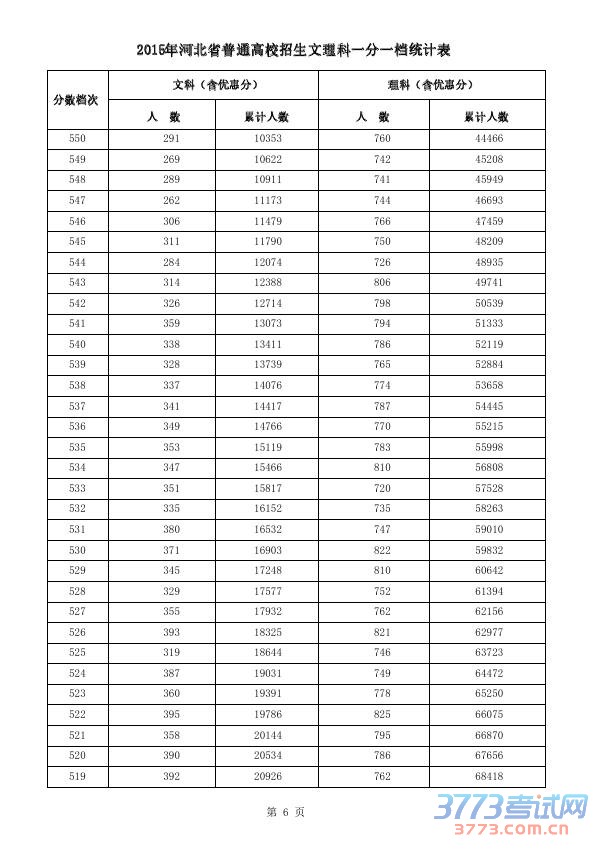 [组图]2015河北高考一分一档表(文理科含加分)