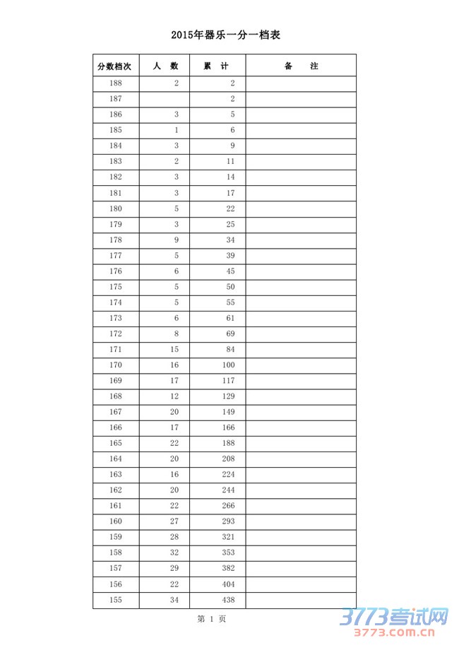 [组图]2015河北高考器乐一分一档表