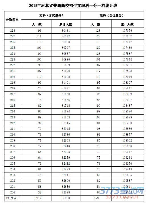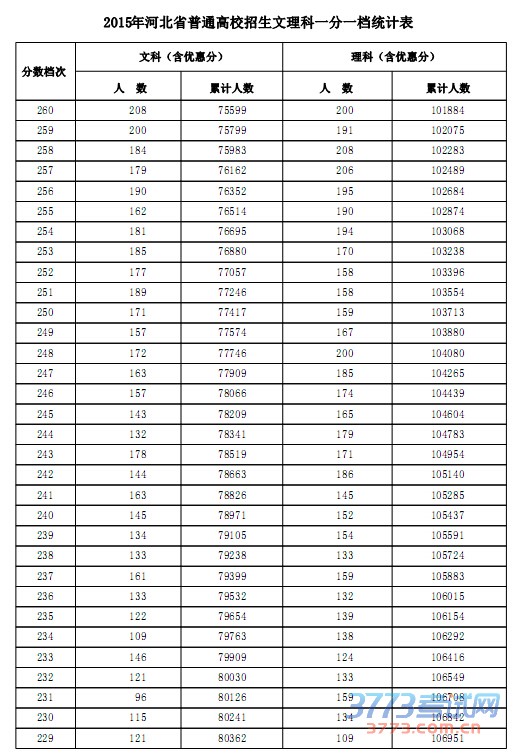 [组图]2015河北高考文理科一分一档表(二本录取后)
