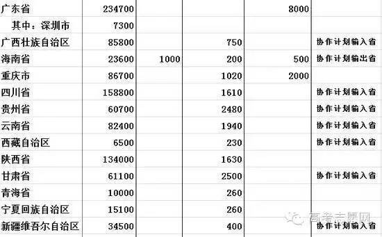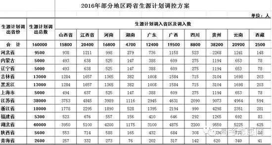 2016年部分地区跨省生源计划调控方案
