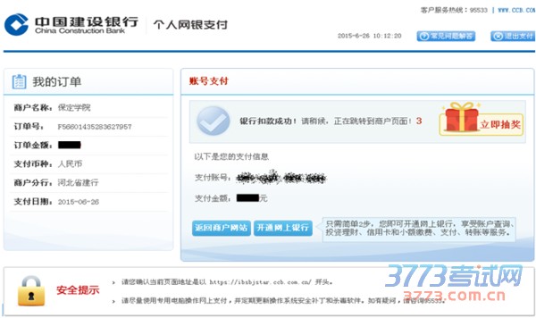 第四步,显示银行扣款成功。