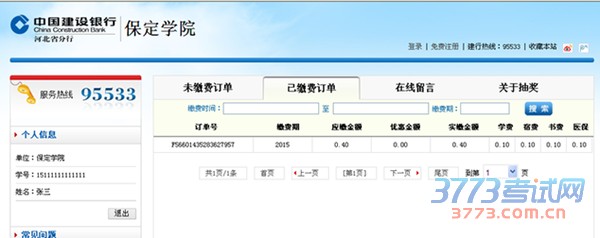 1.如果你已缴费,点击已缴费订单按钮,可以查询您的所有缴费记录。