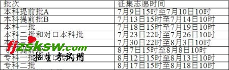 各批征集志愿时间: