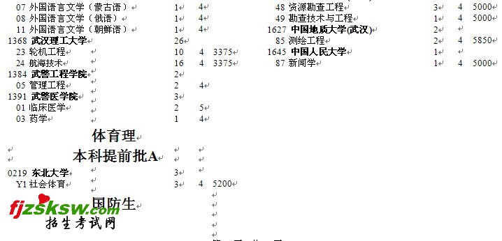 [组图]2010年河北省本科提前批A二志愿征集计划