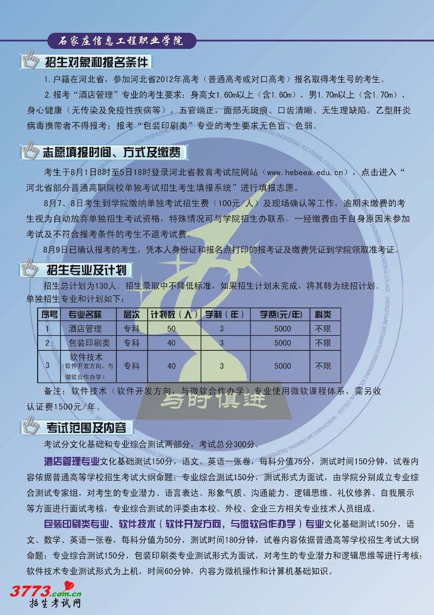 相关文章 2015石家庄信息工程职业学院录取查询方式及分数石家庄信息工程职业学院2015年招生简章2014石家庄信息工程职业学院录取查询方式入口石家庄信息工程职业学院2014年招生简章石家庄信息工程职业学院2014年单独考试招生简章2013石家庄信息工程职业学院录取查询分数线石家庄信息工程职业学院2013年招生简章石家庄信息工程职业学院2013年单独招生简章石家庄信息工程职业学院2005年至2011录取分数线石家庄信息工程职业学院2012年单独招生考试时间 触屏版 电脑版 3773考试网 琼ICP备12003406号-1