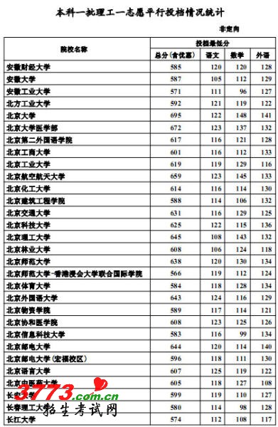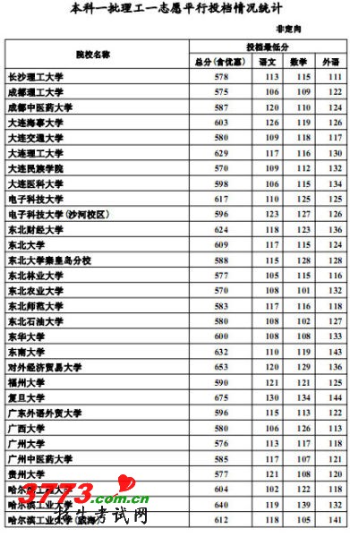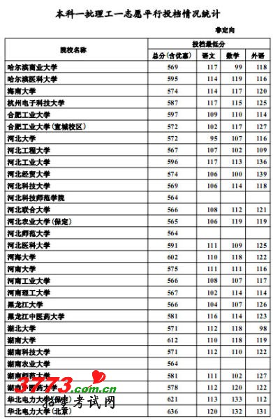 [组图]2012河北高考本科一批一志愿平行投档线(理工)