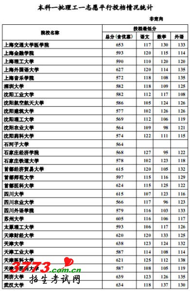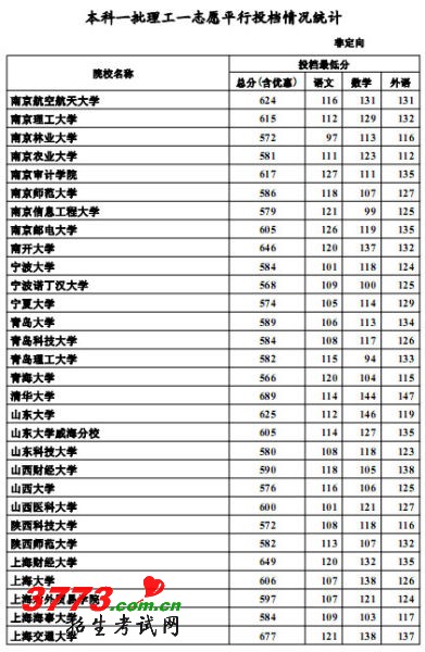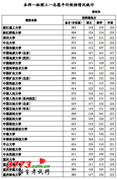 说明:投档最低分中所列出的语、数、外单科成绩,是投档时若总分相同依次比对语、数、外各科成绩而产生的单科投档最低分。