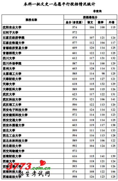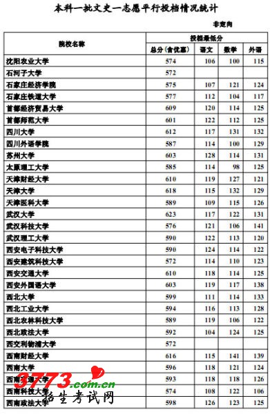 [组图]2012河北高考文史本科一批一志愿平行投档线