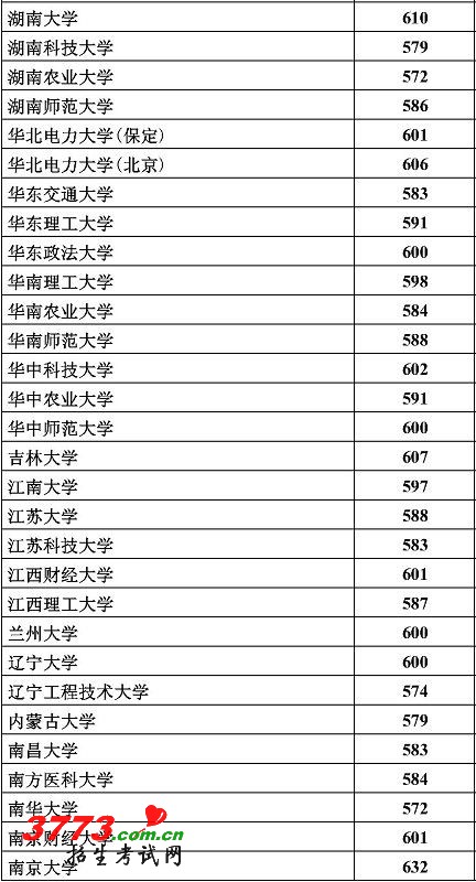 [组图]2012河北高考本科一批一志愿调档分数线公布