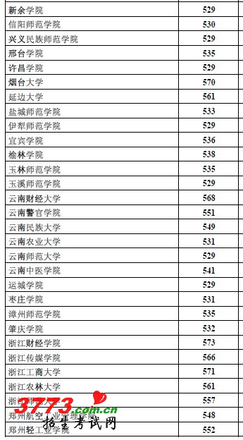 [组图]2012年河北高招本科二批文史类一志愿投档分数线