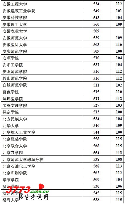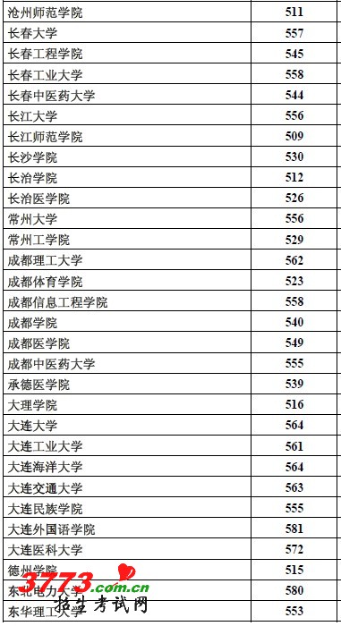 [组图]2012年河北高考本科二批理科一志愿投档分数线