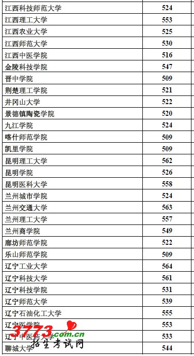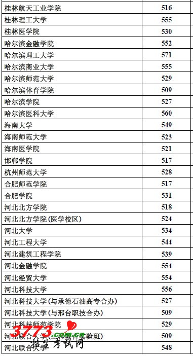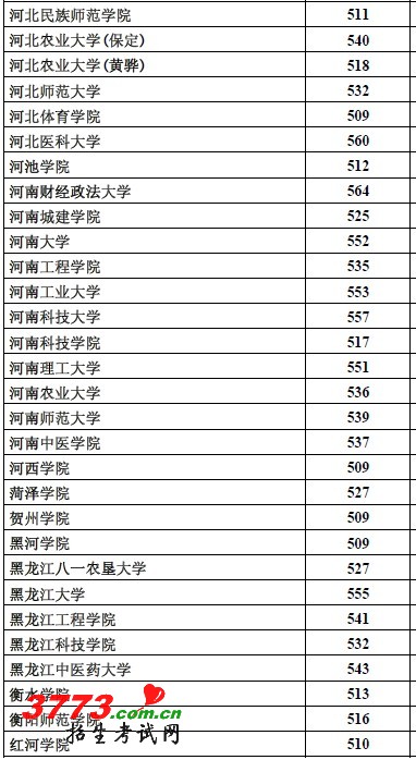 [组图]2012年河北高考本科二批理科一志愿投档分数线