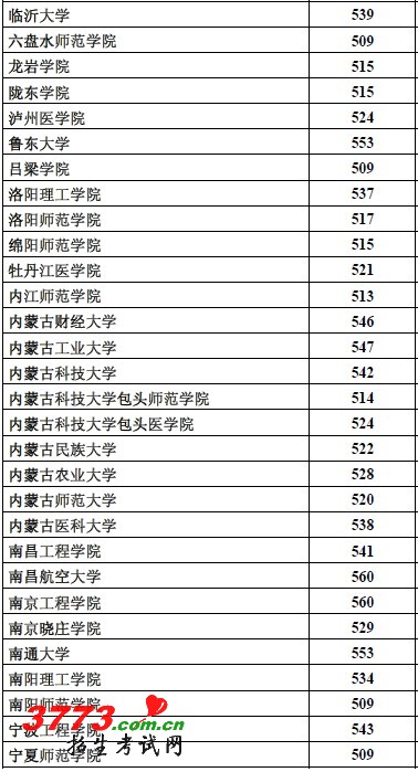 [组图]2012年河北高考本科二批理科一志愿投档分数线