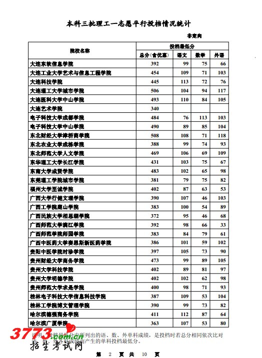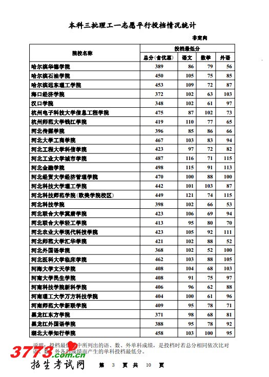 [组图]2012年河北省高招本科三批理工类一志愿投档线