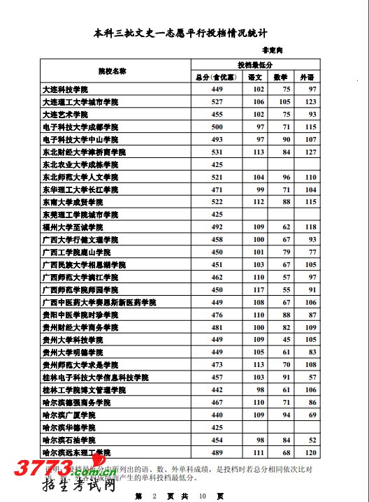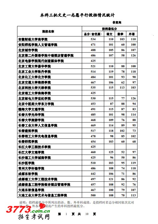 [组图]2012年河北高招本科三批文史类一志愿投档线
