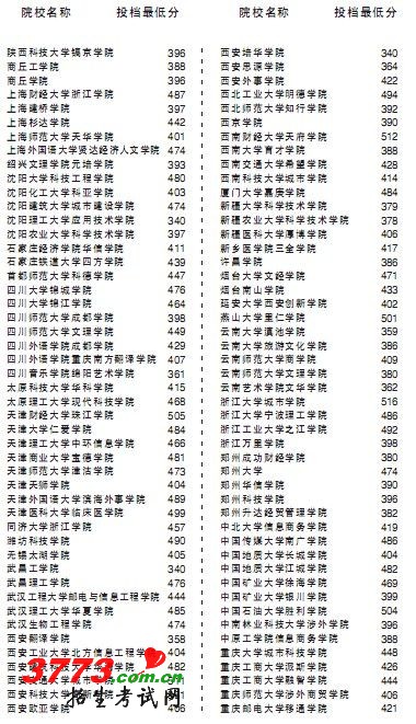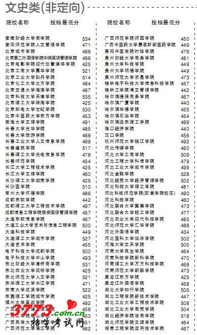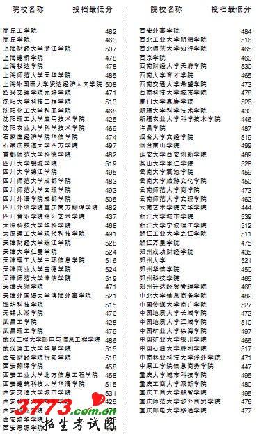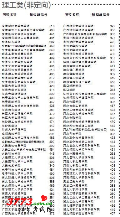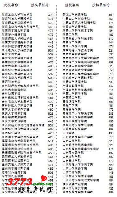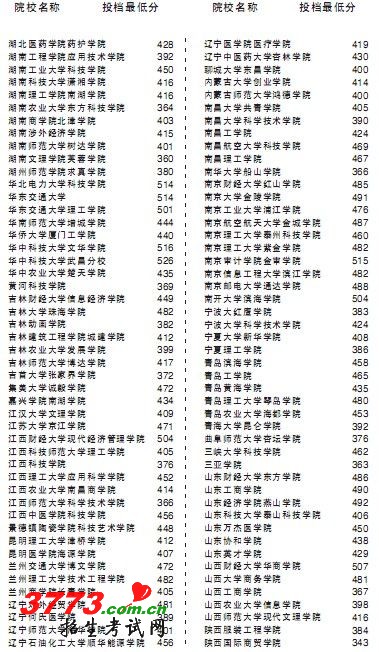 [组图]2012年河北高考本三批一志愿各院校投档线出炉