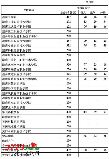 [组图]2012年河北高招专科批文科一志愿平行投档线