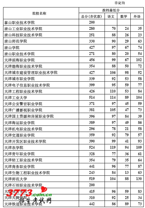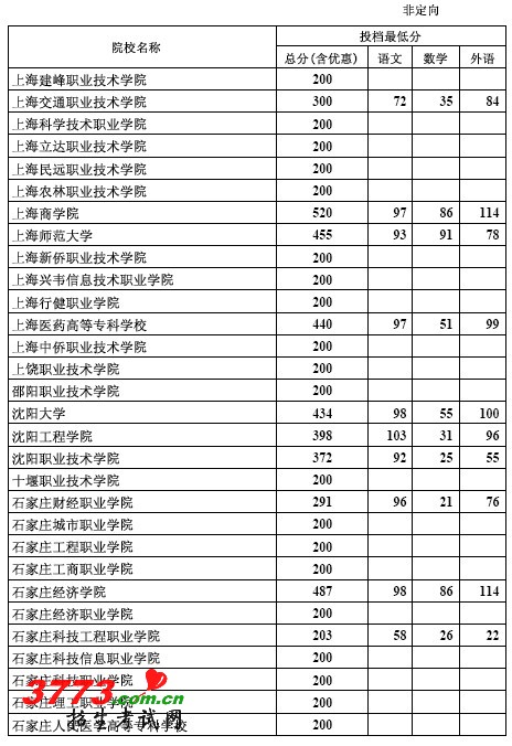 [组图]2012年河北高招专科批文科一志愿平行投档线